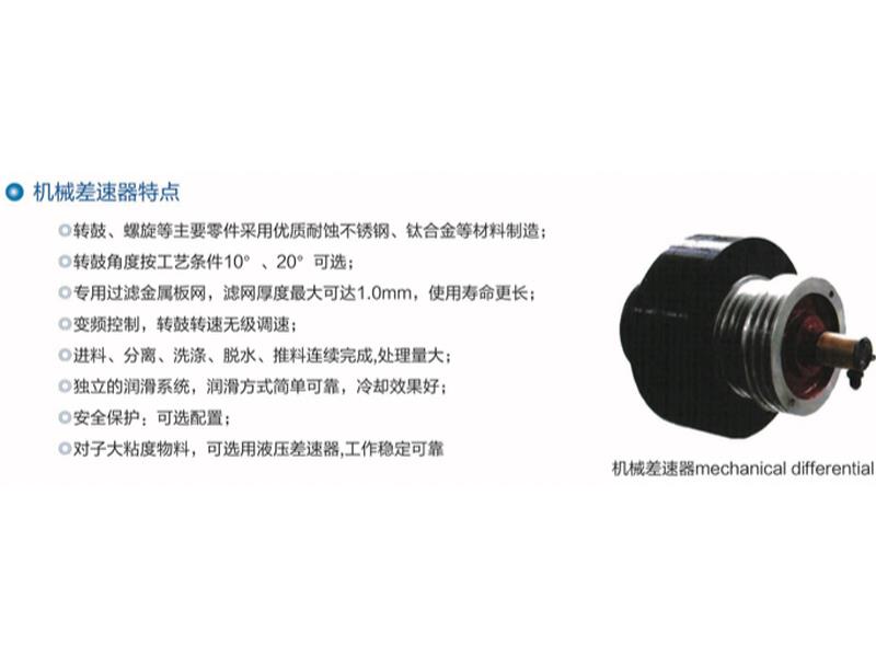 LLW卧式螺旋卸料过滤式离心机是一种能耗低,性能稳定,分离效果好的机型。广泛应用于化工,食品,盐,采矿,制药等行业(对数十种物料的分离,餐厨分离设备,我们具有成功的应用经验,在选型时可与我们的技术人员进行沟通,以便获取更详尽的资料)分离过程中的进料,脱水,洗涤,卸料等工序连续完成,生产效率和自动化程度高,是一种先进的分离设备。